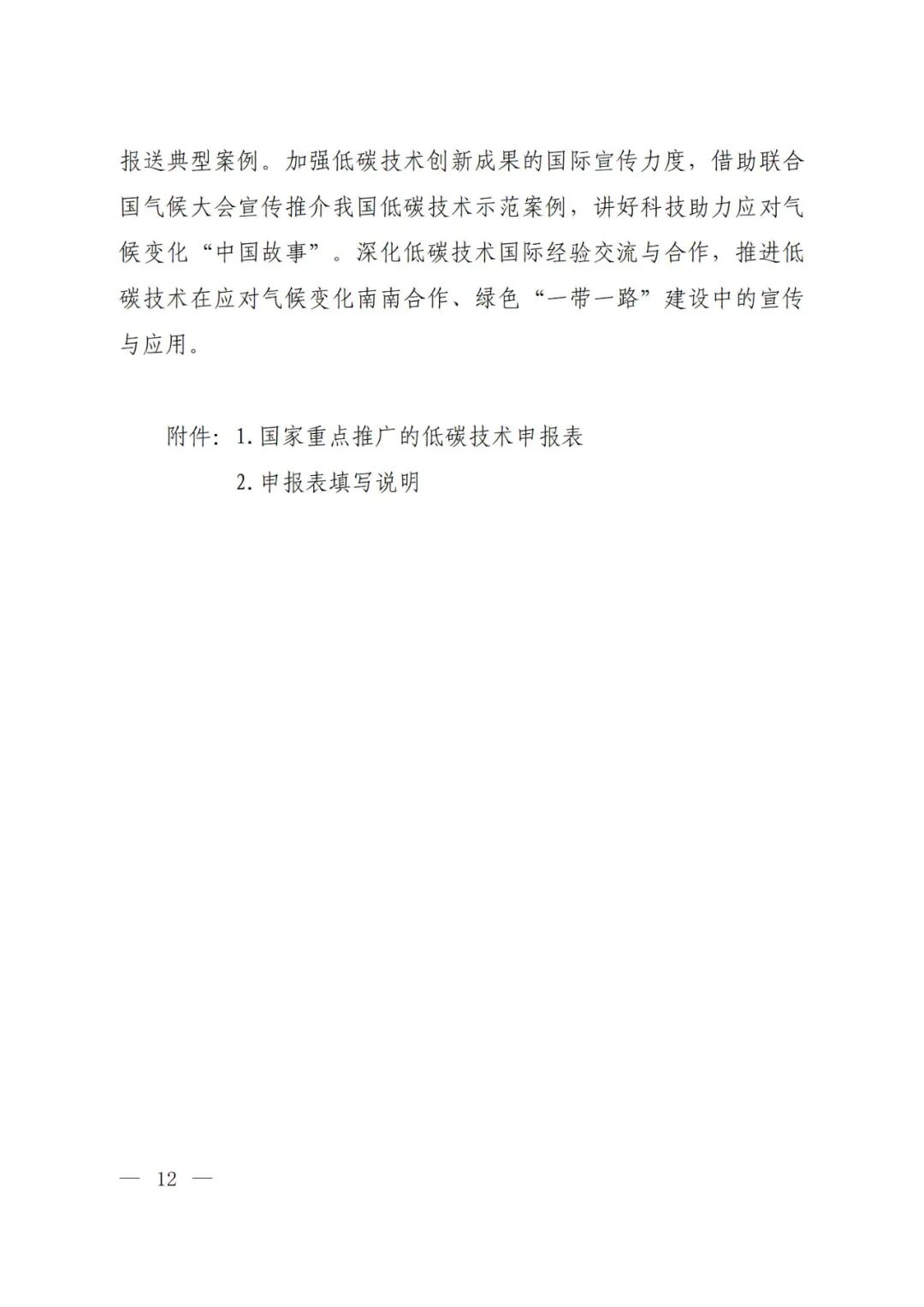 关于印发《国家重点低碳技术征集推广实施方案》的通知各省、自治区、直辖市及新疆生产建设兵团生态环境厅(局)、科技厅(委、局)、住房城乡建设厅(委、管委、局)、交通运输厅(局、委)、农业农村(农牧)厅(局、委),工业和信息化主管部门:
