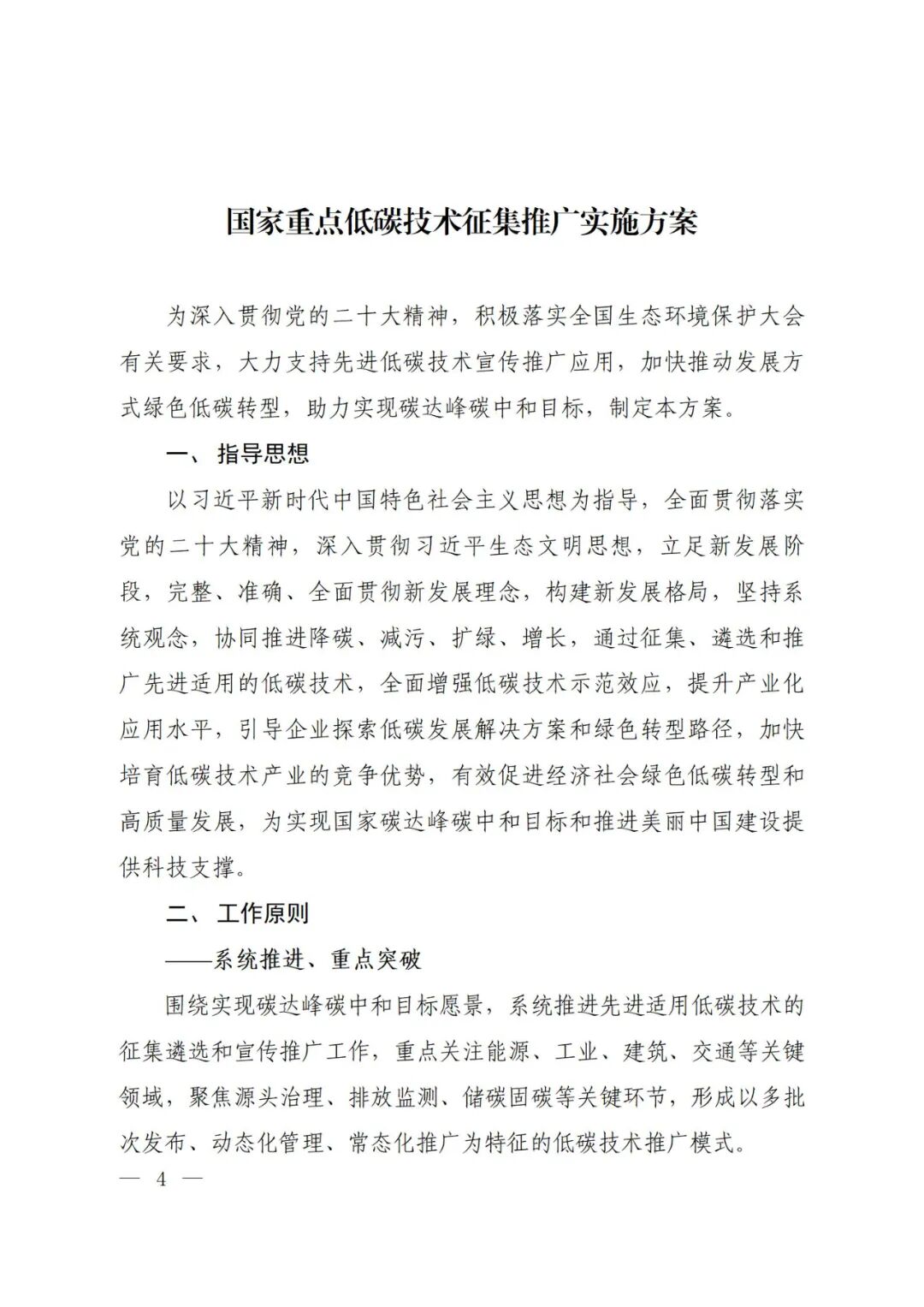 为深入贯彻党的二十大精神,积极落实全国生态环境保护大会有关要求,大力支持先进适用低碳技术宣传推广应用,充分发挥低碳技术在推动实现碳达峰碳中和目标中的重要作用,生态环境部会同科技部、工业和信息化部、住房和城乡建设部、交通运输部、农业农村部制定了《国家重点低碳技术征集推广实施方案》,现印发给你们,请认真抓好落实。