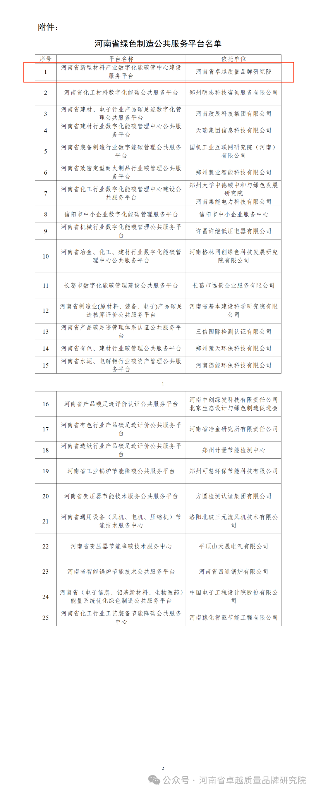 根据《河南省工业信息化厅关于培育建设河南省绿色制造公共服务平台的通知》,经过企业自主申报、地方工信部门审核推荐、专家评审等程序,现将通过评审的25家河南省绿色制造公共服务平台名单予以公示(见附件),请社会各界监督。如有异议,请在公示期内以书面形式向省工业和信息化厅(节能与综合利用处)反映。