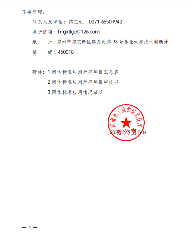 河南省工业和信息化厅办公室 关于申报2022年百项团体标准应用示范项目的通知