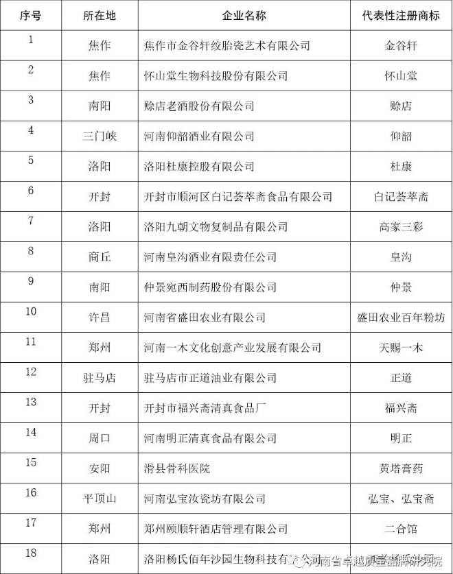 根据《商务部等5部门办公厅(室)关于开展中华老字号示范创建工作的通知》要求,6月26日,省商务厅会同省文化和旅游厅、省市场监管局、省文物局等部门工作人员和相关行业专家,对各地推荐的51家企业组织评审。经厅长办公会研究,拟推荐焦作市金谷轩绞胎瓷艺术有限公司(代表性注册商标:金谷轩)等18家企业作为中华老字号示范创建企业,待公示无异议后报商务部。