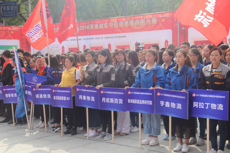 9月28日,由省商务厅、省委宣传部、省文明办、省发革委、省工信厅、省国税局、省工商局、省质检局等18个部门共同主办,省卓越质量品牌研究院、大豫众创空间、郑州丹尼斯百货等单位承办,省民营企业家协会、省物流协会、省家电协会、省酒店用品行业协会、省绿色建筑协会、省旅游文化研究会、省家用纺织行业协会、省服装行业协会、省酒业协会、省汽车行业协会等单位协办的河南2017年“诚信兴商宣传月”启动仪式暨信用消费进万家主题日活动在郑州举行。各主办单位有关负责同志、商协会、企业家代表、新闻媒体记者共同参加了仪式。省商务厅副巡视员姜凌出席启动仪式并致辞。省卓越质量品牌研究院院长赵志正作为承办方领导代表出席。省卓越质量品牌研究院执行秘书长庞晶晶主持启动仪式。